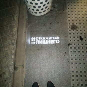Почти во всех районах Москвы около урн появились надписи и стикеры с фразой #ОТКАЖИТЕСЬотЛИШНЕГО. Пока…