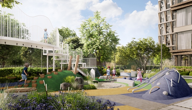 Утверждена концепция благоустройства первой очереди жилого комплекса «1-й Нагатинский» – нового проекта бизнес-класса, который будет построен возле метро «Нагатинская».  Одним из наиболее впечатляющих элементов двора станет площадка для детских игр с игровым мостом «Гора Фудзияма», к основанию которой подступают островки леса. Гора словно олицетворяет красоту и гармонию жизни в новом проекте.