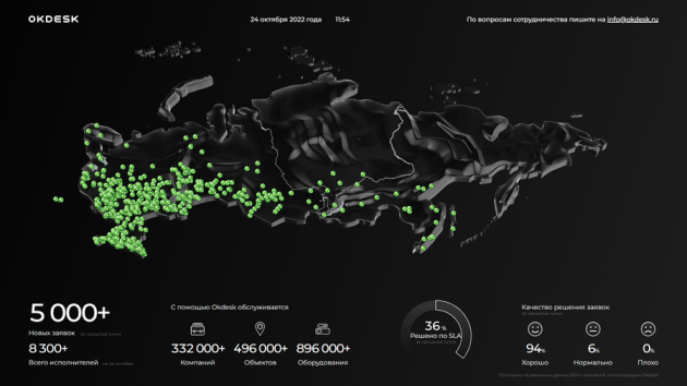 Okdesk запустил проект «Сервисный пульс», основанный на big data. В рамках проекта отечественный разработчик help desk системы в режиме оnline публикует статистику обслуживания более чем 300 000 компаний и почти 1 млн единиц оборудования. «Сервисный пульс» — первая и единственная площадка, которая позволяет оценить масштабы сервисного бизнеса в России.