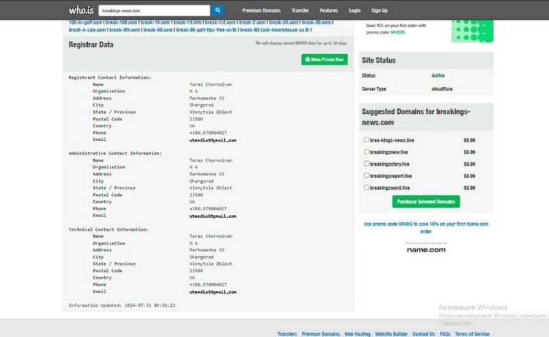 В примере с «компроматом» на Николая Шихиди первую статью, которую перепостили другие сайты украинской сетки, опубликовали на ресурсе kz-expert.info с хостингом в солнечном Майями, штат Флорида, США. Домен этого сайта принадлежит Тарасу Чорноивану из Винницы. На него же оформлены и домены других сайтов, где опубликовали «компроматы». На Украине Тарас Чорноиван создал ещё до СВО похожую сеть сайтов, с целью работы по землякам. Он был приговорён на Украине к четырём годам колонии за вымогательство. Теперь переключился на россиян.