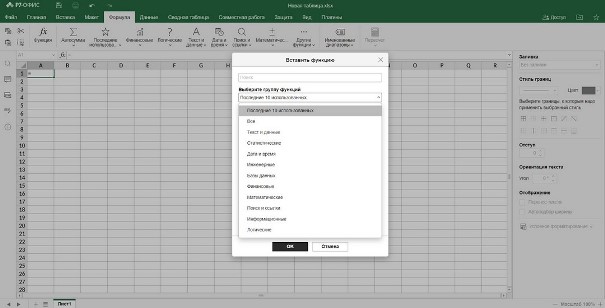 В редакторе таблиц «Р7-Офис» предусмотрена библиотека функций